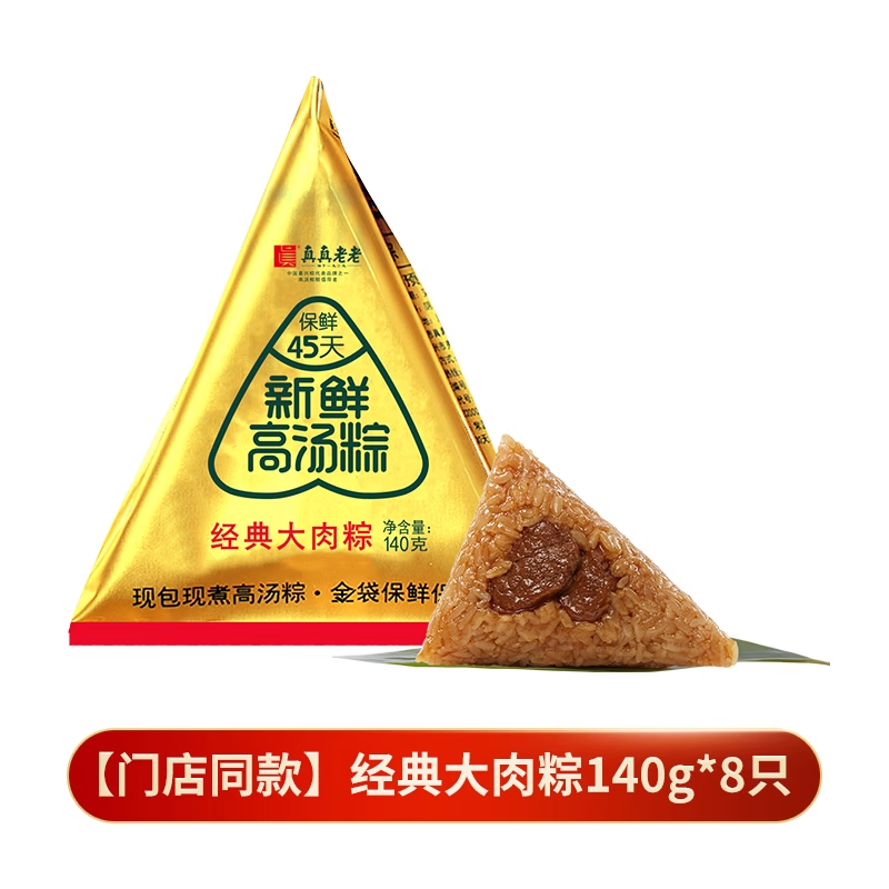 真真老老 粽子 嘉兴肉粽 老字号经典肉粽蛋黄肉粽豆沙蜜枣粽小金袋送礼 【门店同款45天短保锁鲜】经典大肉粽140g*8只