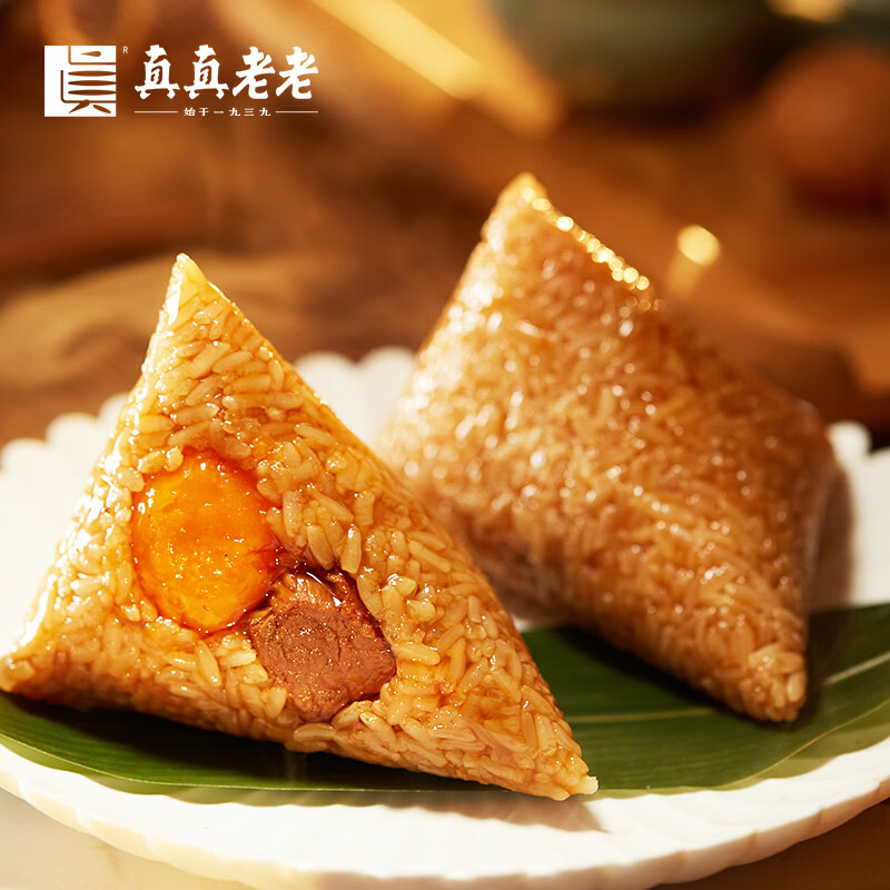 真真老老 粽子 嘉兴肉粽 经典蛋黄肉粽 高汤提鲜 老字号 端午佳选礼 130g*2蛋黄鲜肉粽