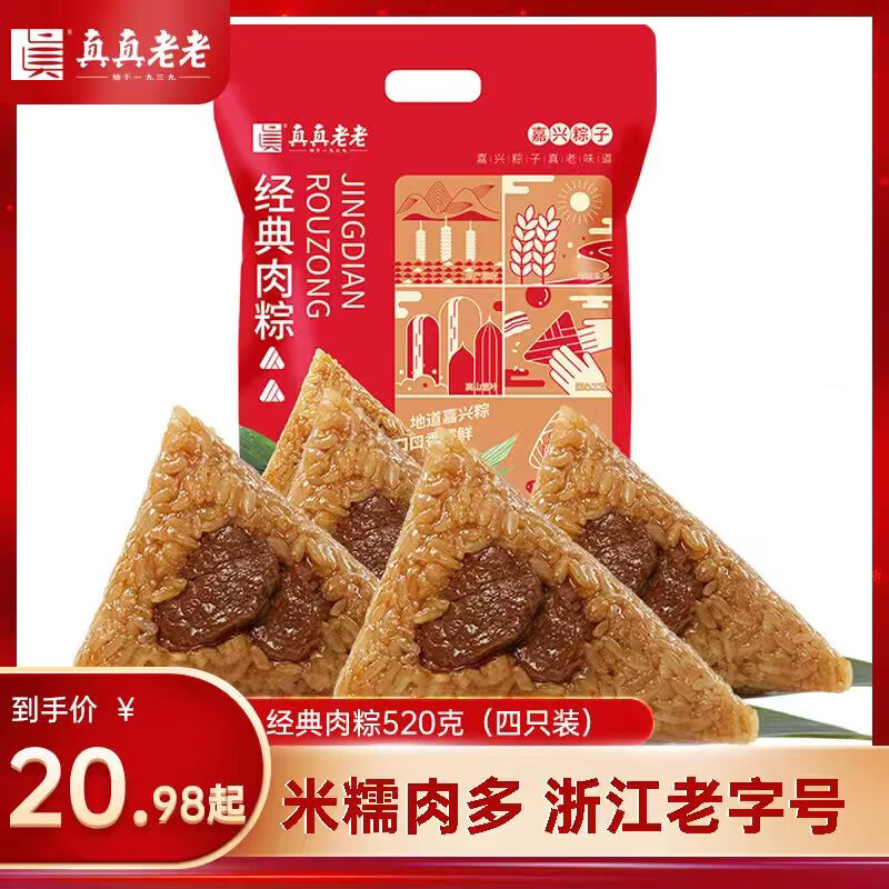 真真老老粽子 经典肉粽130克*4只散粽嘉兴老字号端午节特产咸粽