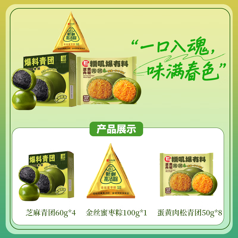 真真老老 粽子 嘉兴肉粽 老字号经典肉粽蛋黄肉粽豆沙蜜枣粽小金袋送礼 【力荐】芝麻青团60g*4+蛋黄青团50g*8+蜜枣粽100g*1