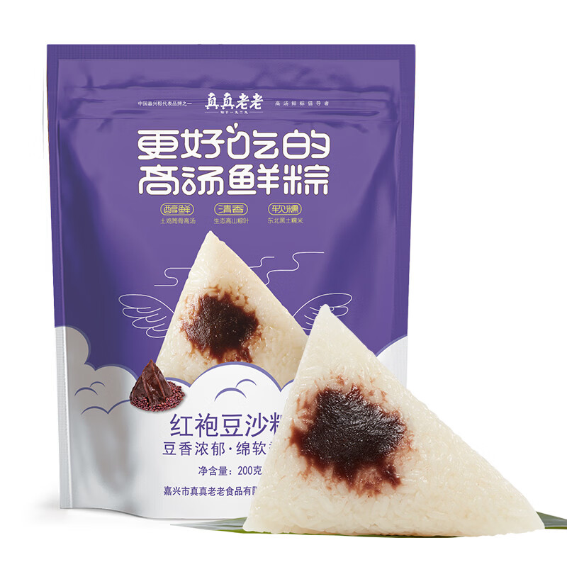 真真老老嘉兴粽子蛋黄肉粽大鲜肉咸粽农家手工粽散装端午特产批发 【门店同款】红袍豆沙粽(100g*2只)