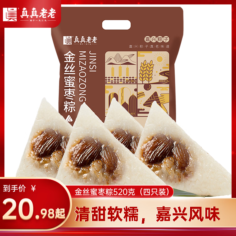 真真老老粽子 金丝蜜枣粽130克*4只散粽嘉兴老字号端午节特产甜粽