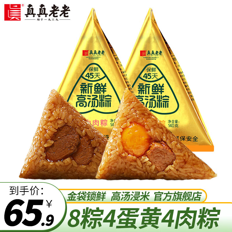 真真老老嘉兴粽子 老字号高汤蛋黄肉粽子短保锁鲜粽小金袋真空端午特产 【保鲜】大肉粽4+蛋黄肉4