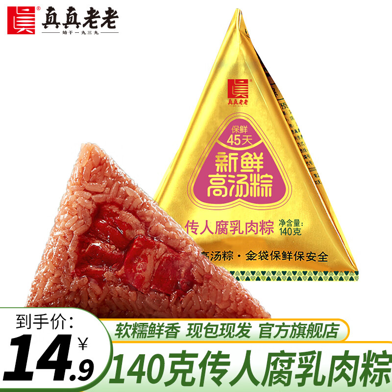 真真老老嘉兴粽子老字号传人大肉粽140克新鲜短保高汤鲜粽早餐端午节特产 【金袋传人粽】140g腐乳大肉