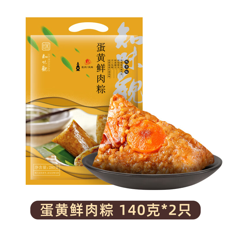 知味观粽子 中华老字号 咸鸭蛋猪肉散装 蛋黄大肉粽280g2只装