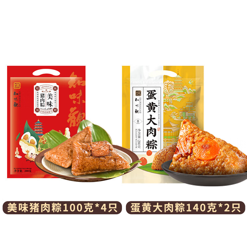 知味观端午粽子礼盒蛋黄大肉粽豆沙甜粽子端午节礼物送父母客户 猪肉粽*4只+蛋黄肉粽*2只