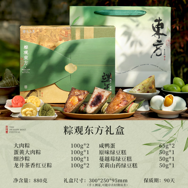 知味观粽子礼盒880g咸鸭蛋黄鲜肉粽甜粽糕 粽观东方粽子礼盒