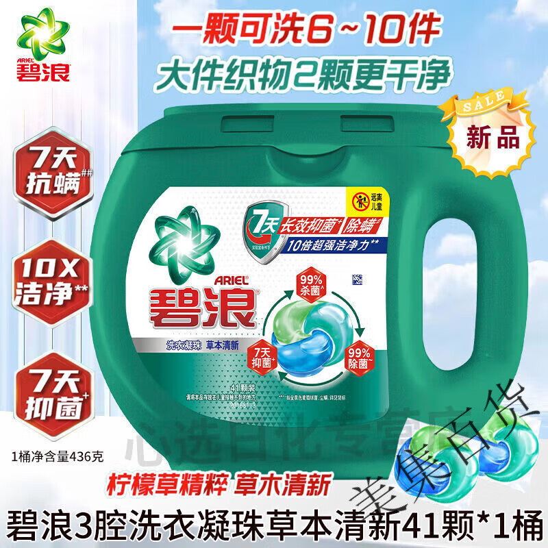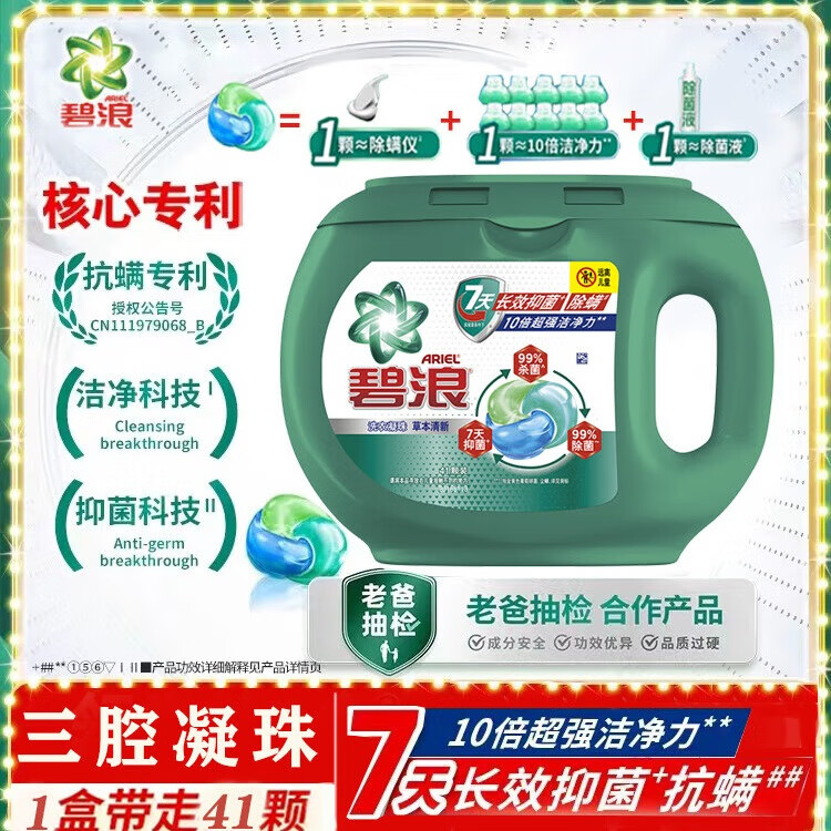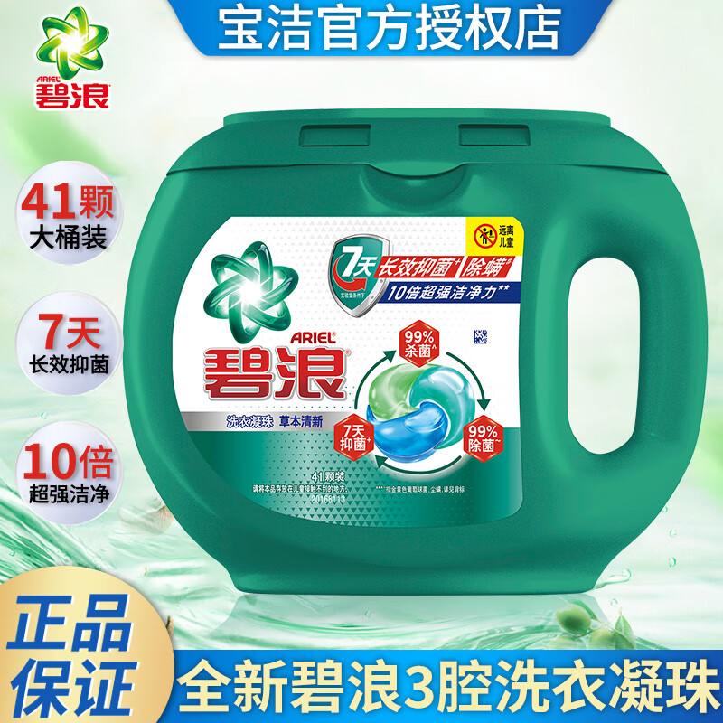 碧浪洗衣凝珠7天除菌持久留香温和清洁去污家庭 宿舍专用凝珠洗衣珠 新升级 三腔凝珠 41颗