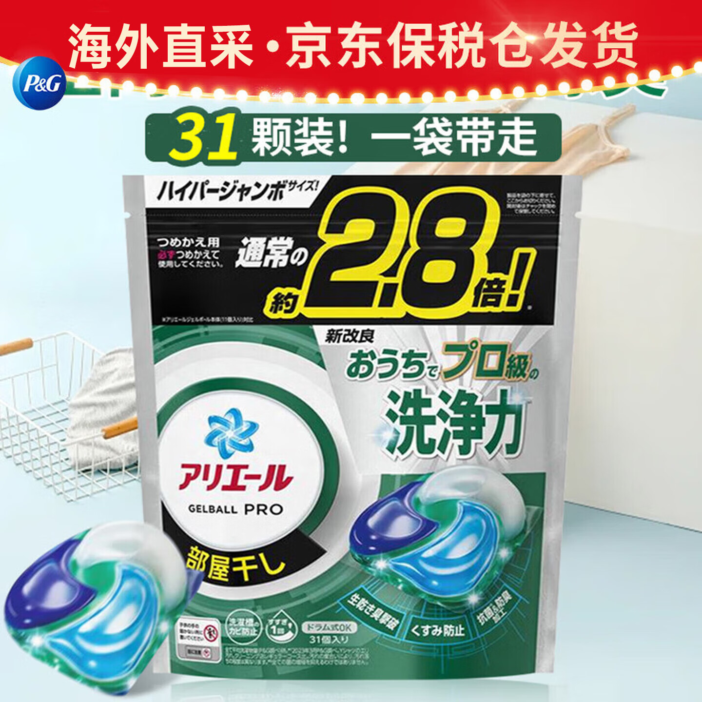 宝洁(P&G)洗衣凝珠31颗 替换装4D碧浪 日本进口 柔顺室内晾晒绿除菌消臭