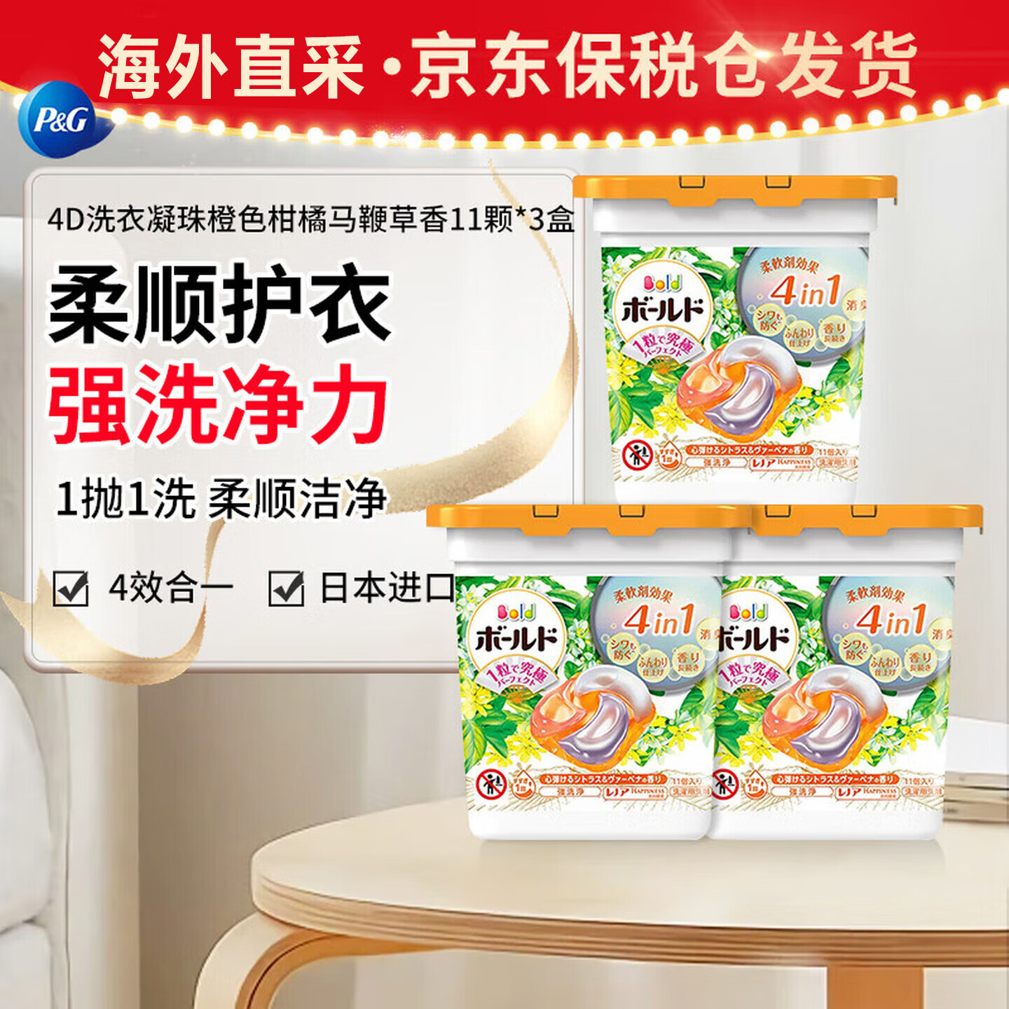 宝洁(P&G)洗衣凝珠11颗*3盒 花香柔顺留香碧浪洗衣球橙色柑橘香日本进口