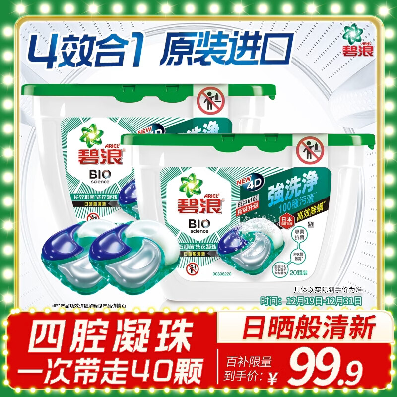 碧浪(进口)四腔洗衣凝珠日晒般清新18g*40颗盒装 杀菌除螨持久留香