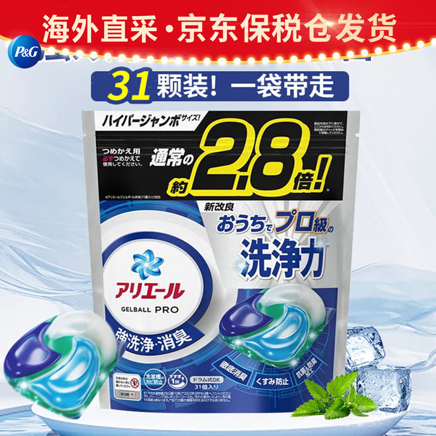 宝洁(P&G)洗衣凝珠31颗 替换装 碧浪ARIEL洗衣球 日本进口 强力洁净留香