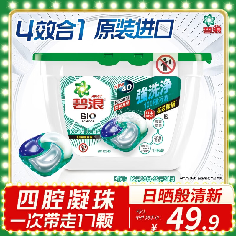 碧浪(原装进口)四腔洗衣凝珠日晒般清新18g*17颗盒装