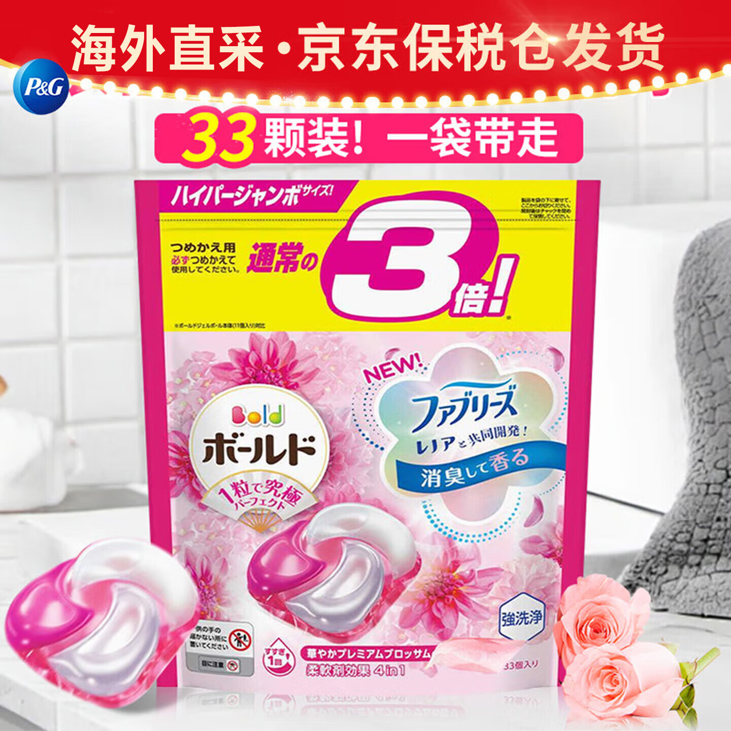 宝洁(P&G)洗衣凝珠33颗替换装 4D碧浪洗衣球日本进口柔顺留香家用甜美花香