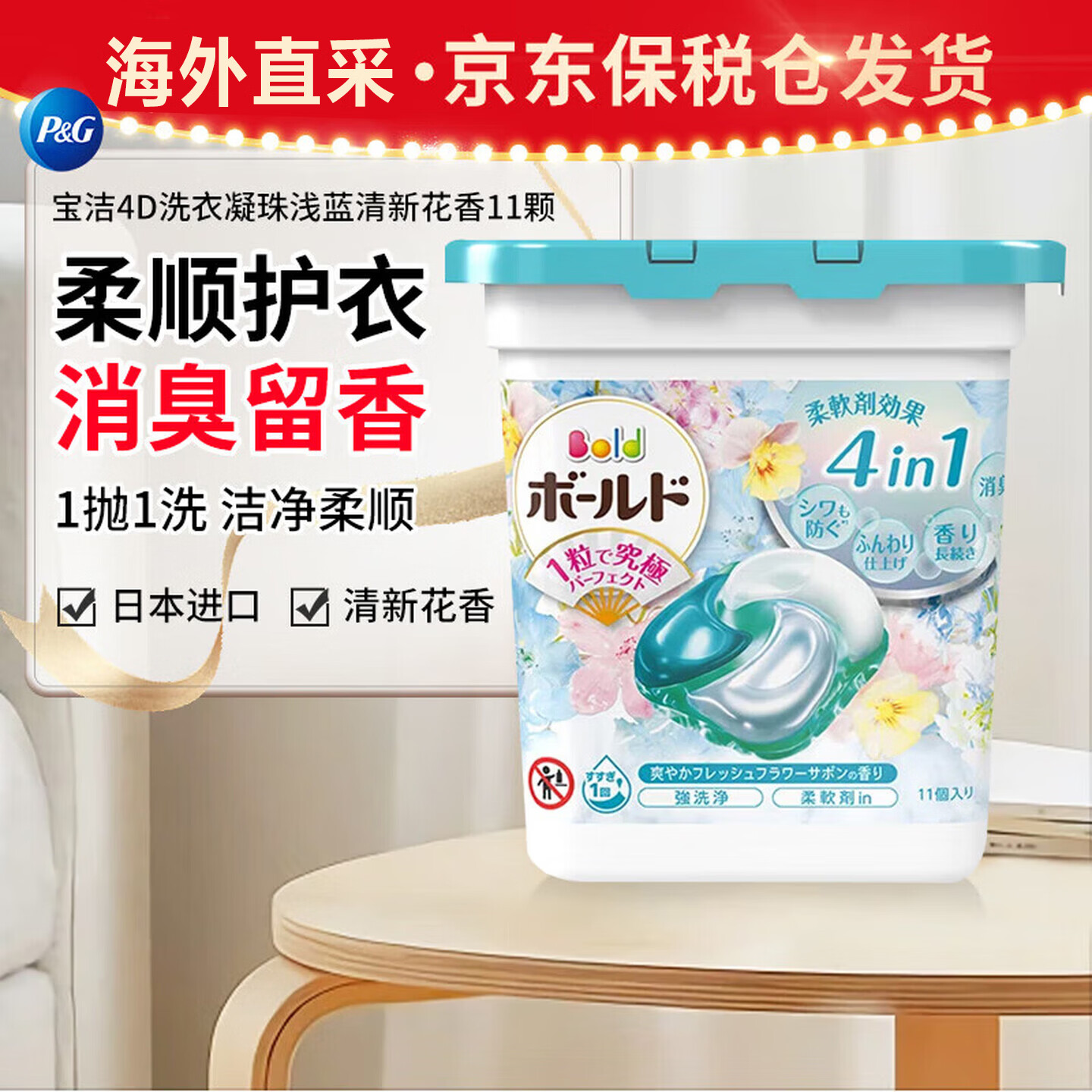 宝洁洗衣凝珠11颗*1盒碧浪洗衣液 衣物除菌柔顺长效留香 清新花香