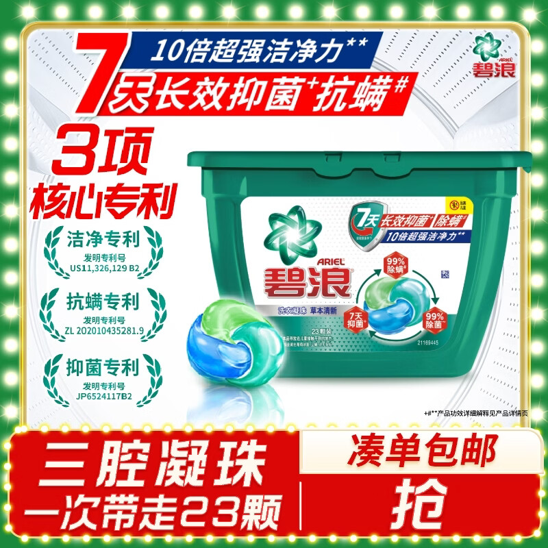 碧浪三合一洗衣凝草本清新七天长效除螨实惠超值装囤货凝珠 碧浪洗衣凝珠草本清新 23颗/盒(特惠装) 1盒