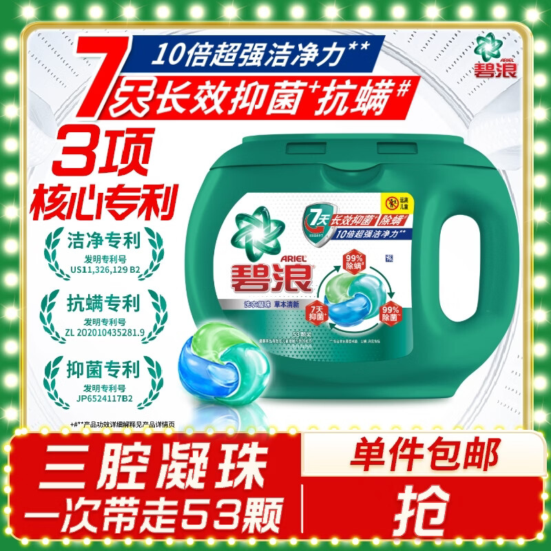 碧浪三腔洗衣凝珠草木清新10g*53颗盒装 7天抑菌10倍洁净力