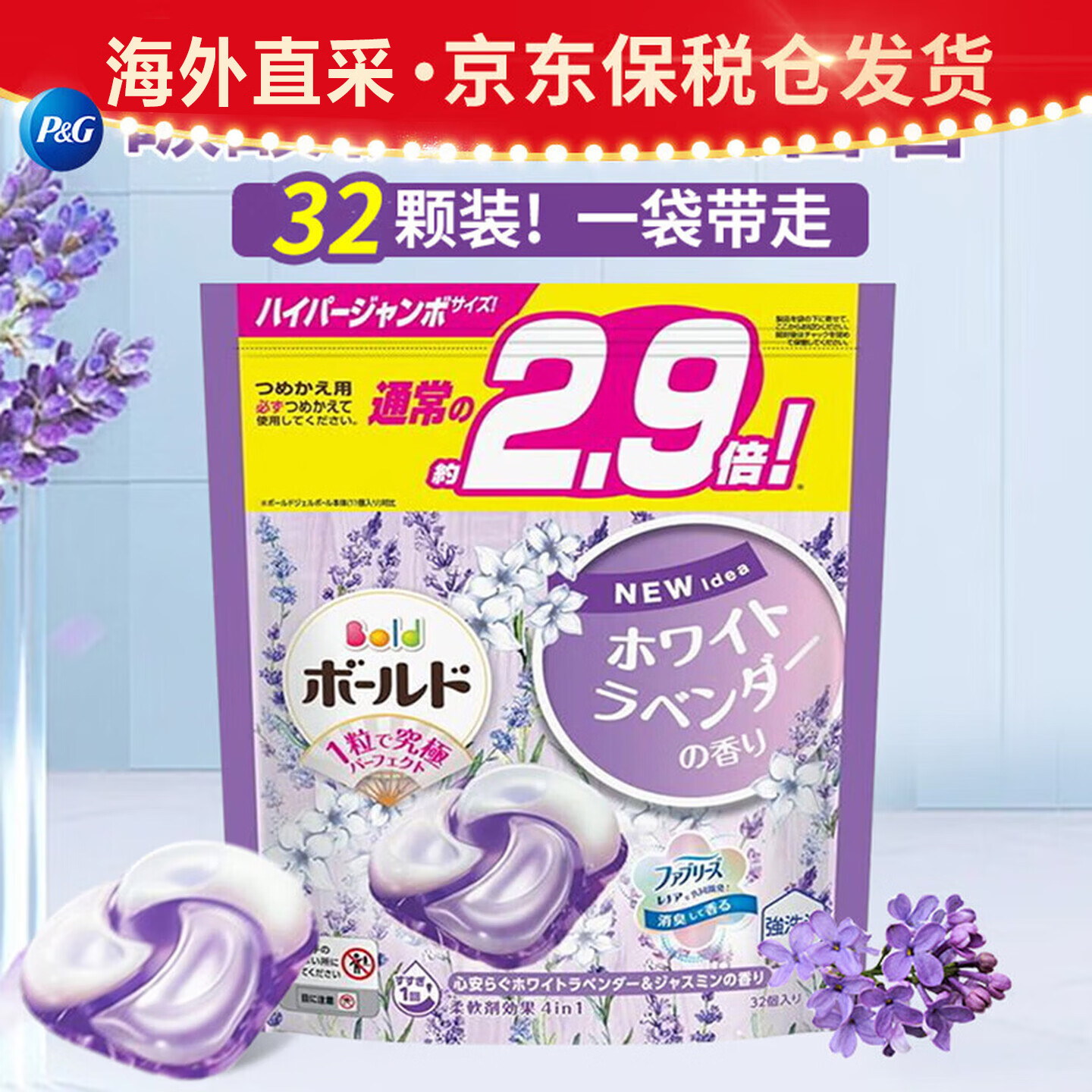宝洁(P&G)洗衣凝珠32颗*替换装 碧浪洗衣球花香柔顺剂持久留香 薰衣草香