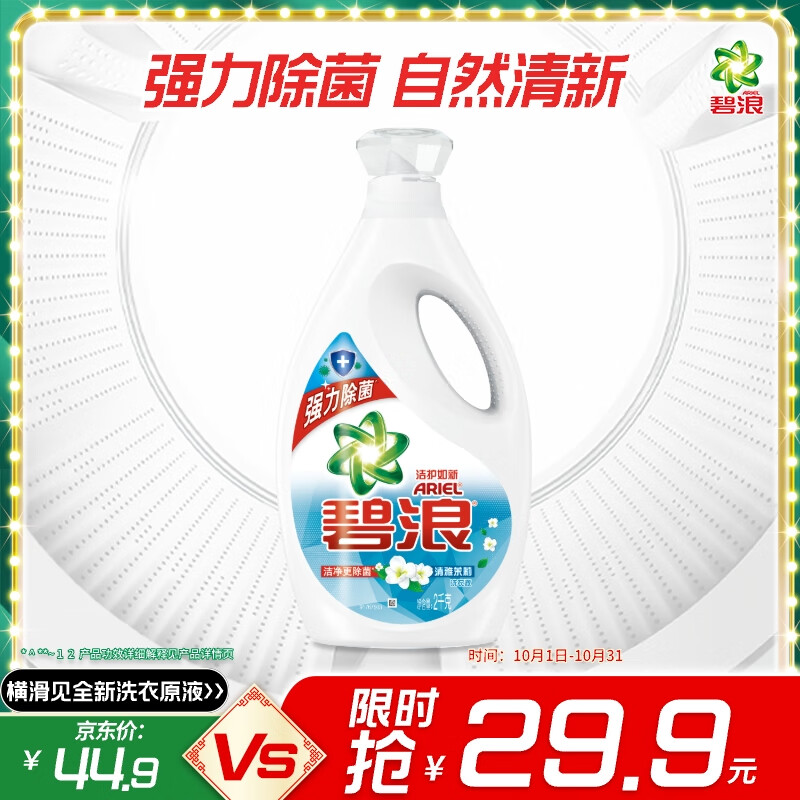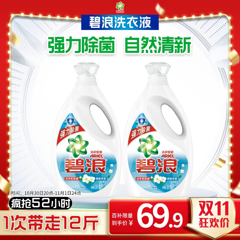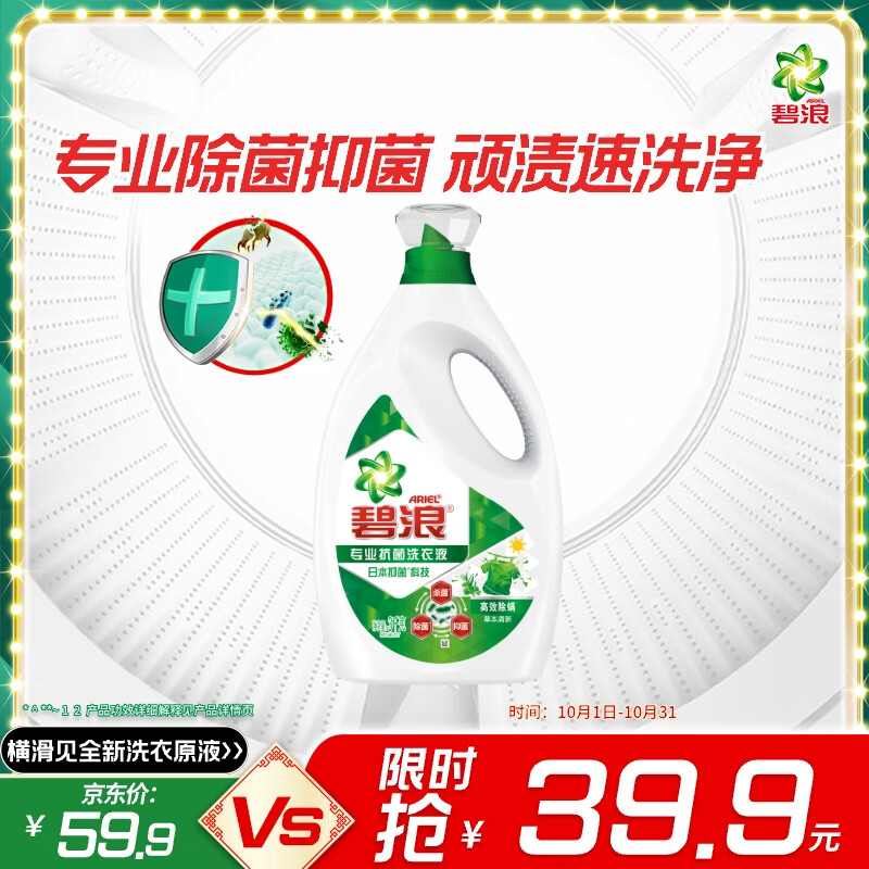 碧浪除菌洗衣液清雅茉莉4斤瓶装 杀菌除螨 根源消臭去黄 支持快洗