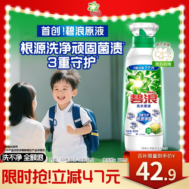 碧浪除菌洗衣原液雨后初晴1.9斤瓶装 1次去黄 7天抑味 洗衣液
