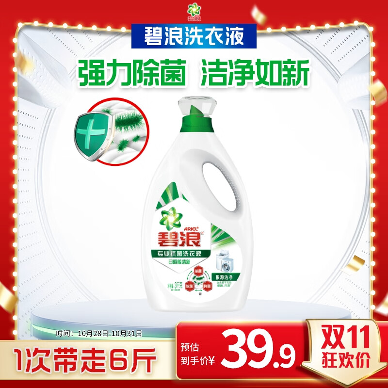 碧浪除菌洗衣液日晒般清6斤瓶装 杀菌除螨 根源消臭去黄 支持快洗