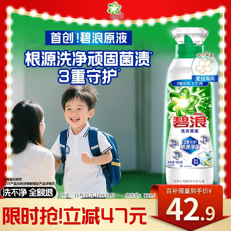 碧浪除菌洗衣原液夏日海风1.9斤瓶装 1次去黄 7天抑味 洗衣液