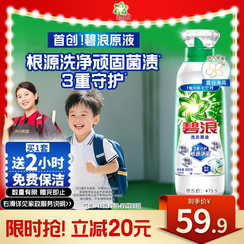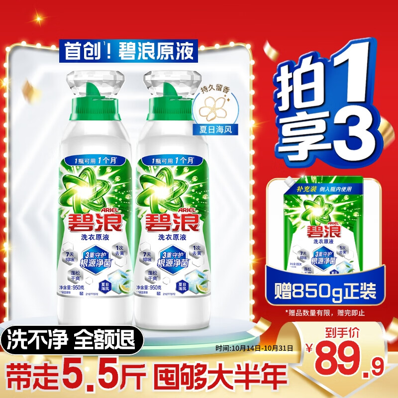 碧浪除菌洗衣原液夏日海风3.8斤瓶装(950g*2) 1次去黄 7天抑味 洗衣液