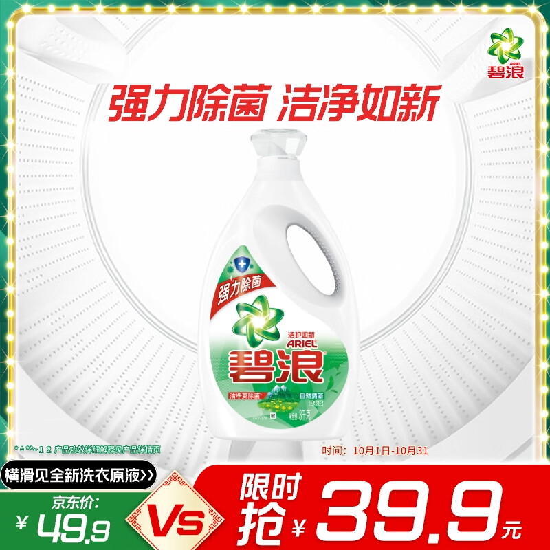 碧浪除菌洗衣液自然清新6斤瓶装 杀菌除螨 根源消臭去黄 支持快洗