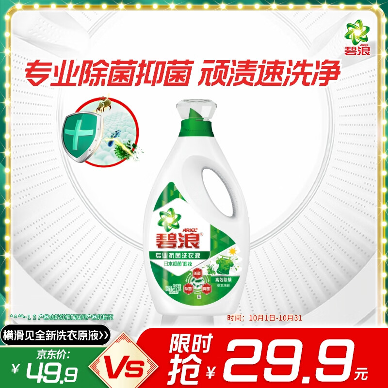 碧浪除菌洗衣液草本清新1.4斤瓶装 杀菌除螨 根源消臭去黄 支持快洗