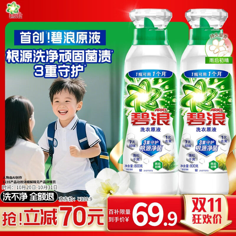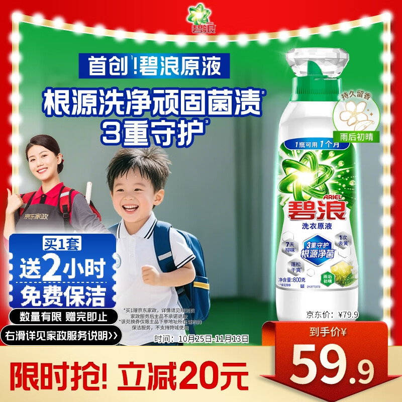碧浪除菌洗衣原液雨后初晴3.2斤瓶装(800g*2) 1次去黄 7天抑味 洗衣液