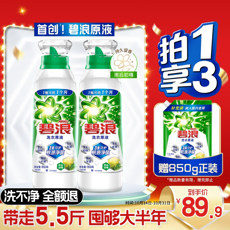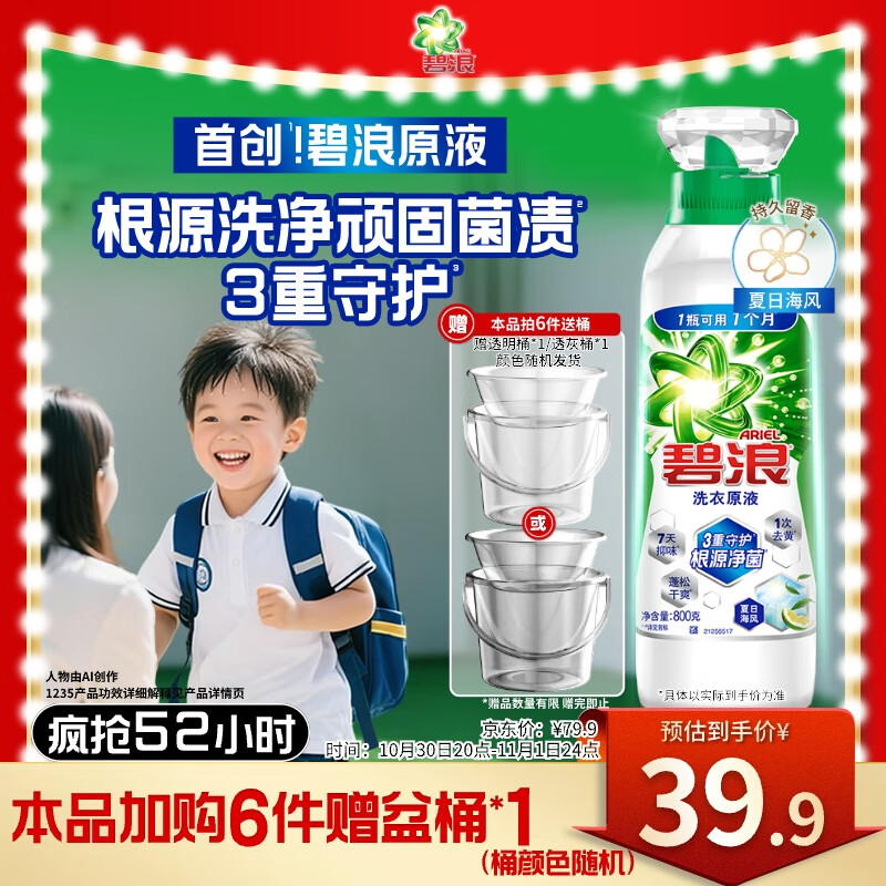 碧浪除菌洗衣原液雨后初晴1.6斤瓶装 1次去黄 7天抑味 洗衣液