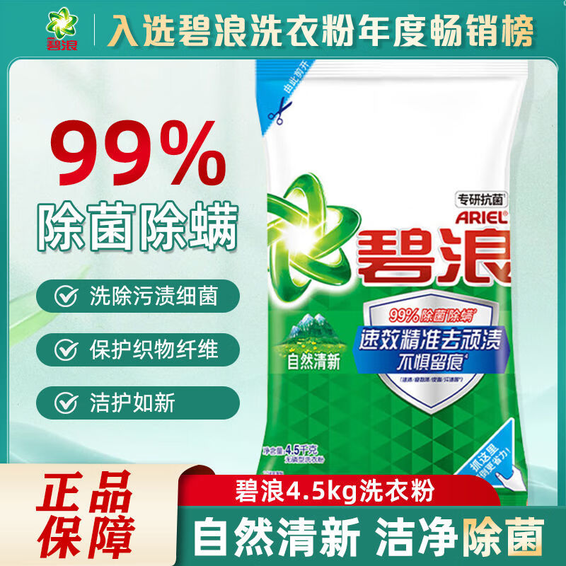 碧浪洗衣粉除菌去渍持久留香非皂粉大袋批发家庭装深层去污清新香 9斤丨自然清新4.5kg