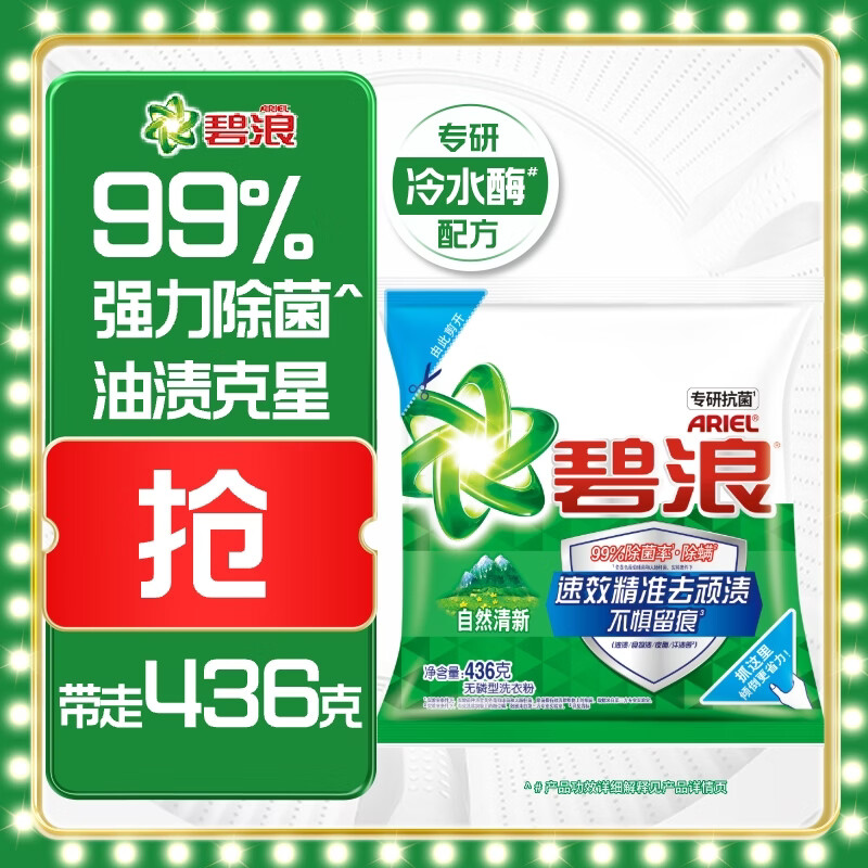 碧浪专研抗菌洗衣粉自然清新436g 除螨除菌 速溶 深层去污