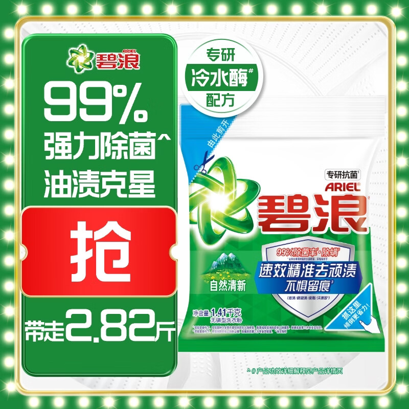 碧浪专研抗菌洗衣粉自然清新2.82斤装 除螨除菌 速溶 深层去污