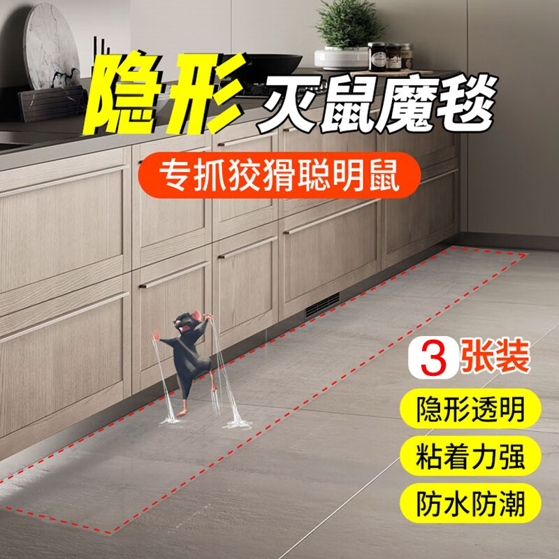 科凌虫控 粘鼠板灭鼠魔毯强力老鼠贴灭鼠毯老鼠捕捉神器家用笼老鼠夹捕鼠 粘鼠魔毯120*28CM【透明款3张】