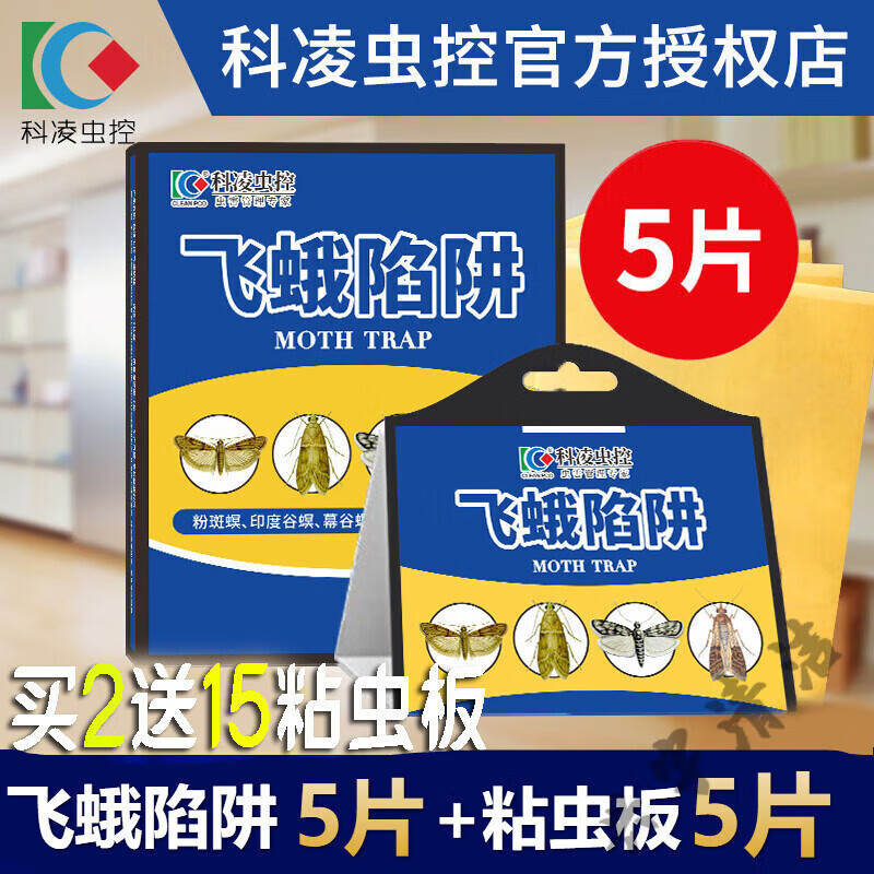 科凌虫控新款科凌虫控飞蛾诱捕器飞蛾陷阱米面蛾捕捉器蠓蛾蚋米蛾厨房用粘 第二代5片一盒