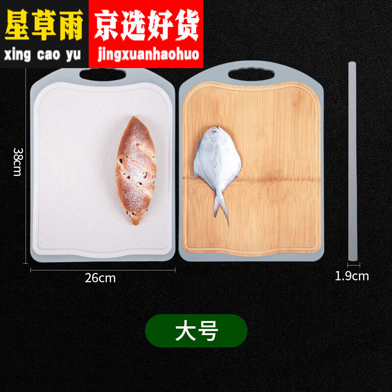 LJ人家双面菜板家用实木和占板厨房砧板整竹案板 整竹稻谷壳-大号38*26*1点9cm-