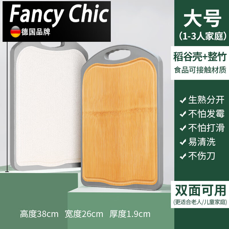 三尺巷人家双面菜板 家用实木和占板厨房砧板整竹案板 整竹/稻谷壳-大号38*26*1.9cm-