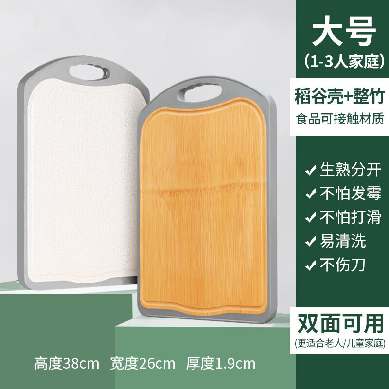 人家双面菜板家用实木和占板厨房砧板整竹案板 整竹稻谷壳-大号38*26*1点9cm-