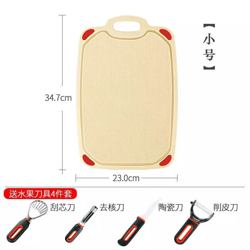 何佳功稻壳砧板稻谷壳菜板防霉家用塑料水果小麦切菜板案板双面材质防滑 套装红色