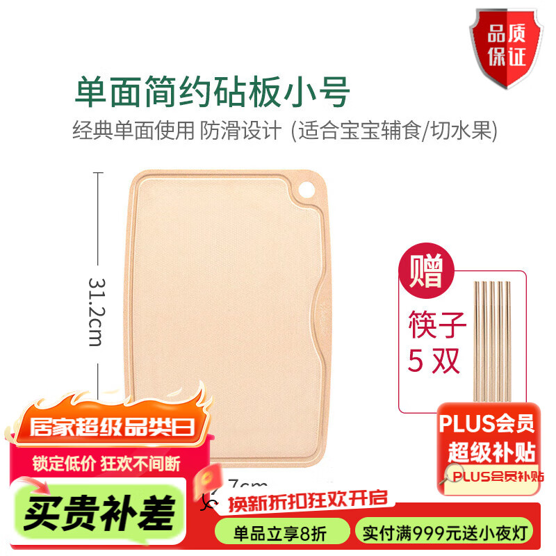 壳氏唯(HUSKS WARE)壳氏唯稻壳砧板家用防霉切菜板婴儿辅食水果不发霉稻谷壳案板 单面简约砧板小号无