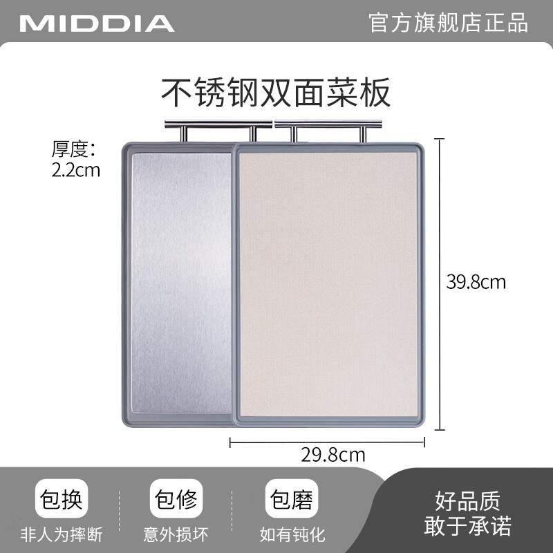 不锈钢切菜板家用案板德国304刀板大号双面粘板塑料厨房大砧板 不锈钢稻谷壳双面大砧板