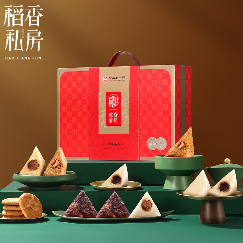 北京稻香村稻香私房粽子礼盒装鲜肉粽子黑米八宝豆沙蜜枣甜味早餐端午节礼品 【9粽5味+桃酥】端午香粽1230g.
