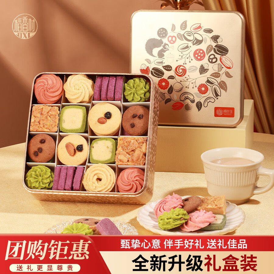 稻香村曲奇饼干糕点礼盒经典金310g伴手礼物休闲零食点心新春年货礼盒