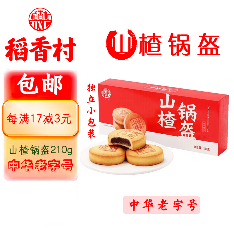 稻香村DXC糕点点心零食 蛋黄酥桃酥凤梨酥枣花酥牛舌饼拿破仑北京特产 山楂锅盔210g(约6枚)