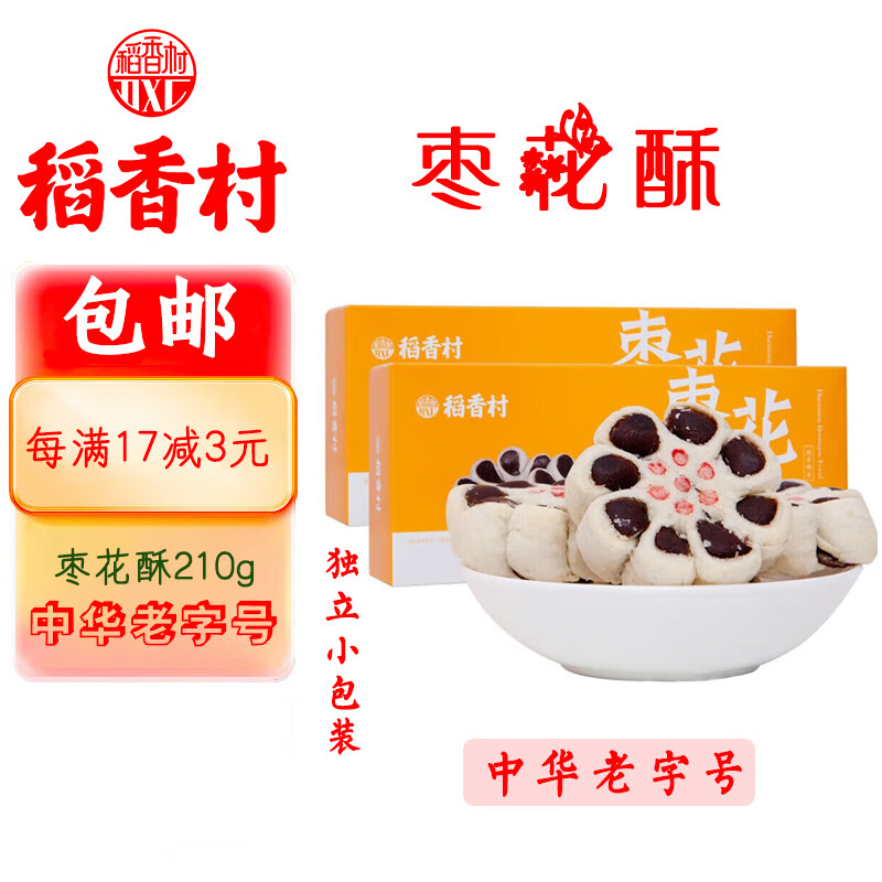 稻香村DXC糕点点心零食 蛋黄酥桃酥凤梨酥枣花酥牛舌饼拿破仑北京特产 枣花酥210g(约6枚)