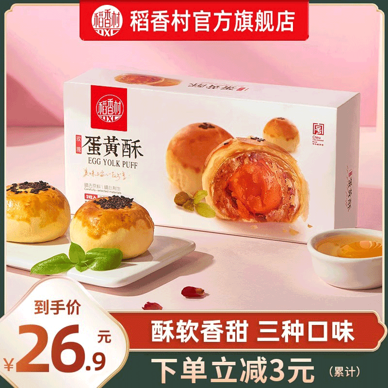 北京稻香村4块三禾手工传统糕点点心散蛋黄酥 休闲零食小吃点心 蛋黄酥4块
