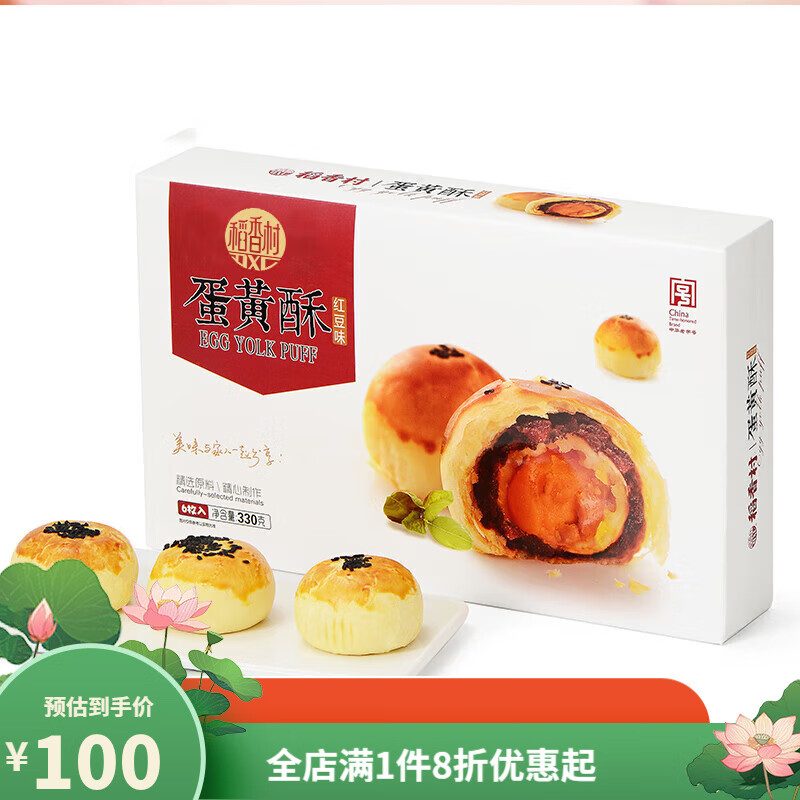 稻香村(DXC) 蛋黄酥红豆味330g 糕点点心早餐休闲零食 6枚礼盒装