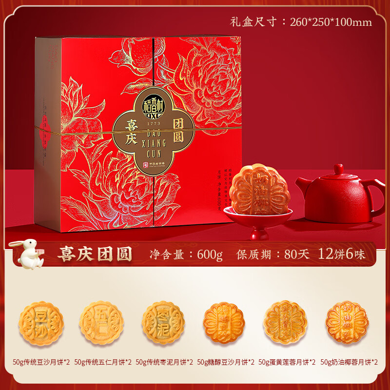 稻香村(DXC)月饼礼蛋黄酥糕点蛋黄莲蓉月饼多口味中秋送礼团购福利礼品 12饼6味喜庆团圆600g