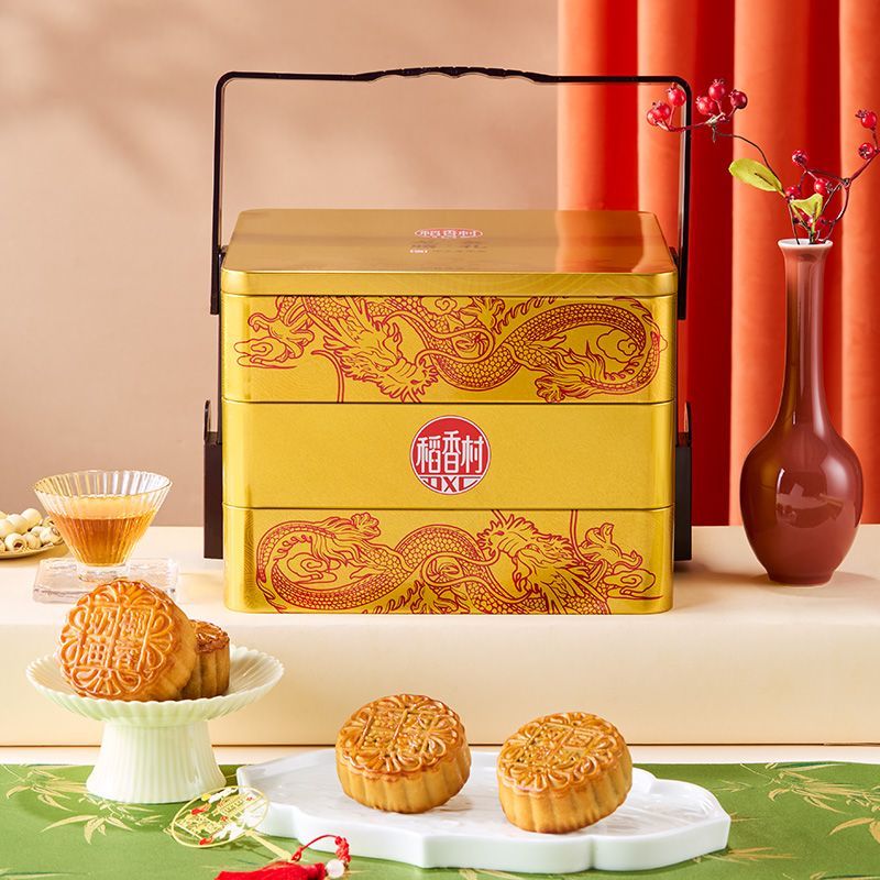 北京稻香村【中华】稻香村月饼礼盒蛋黄莲蓉京式五仁花生酥早餐零食团购中秋 龙腾金礼【三层铁盒】14饼10味